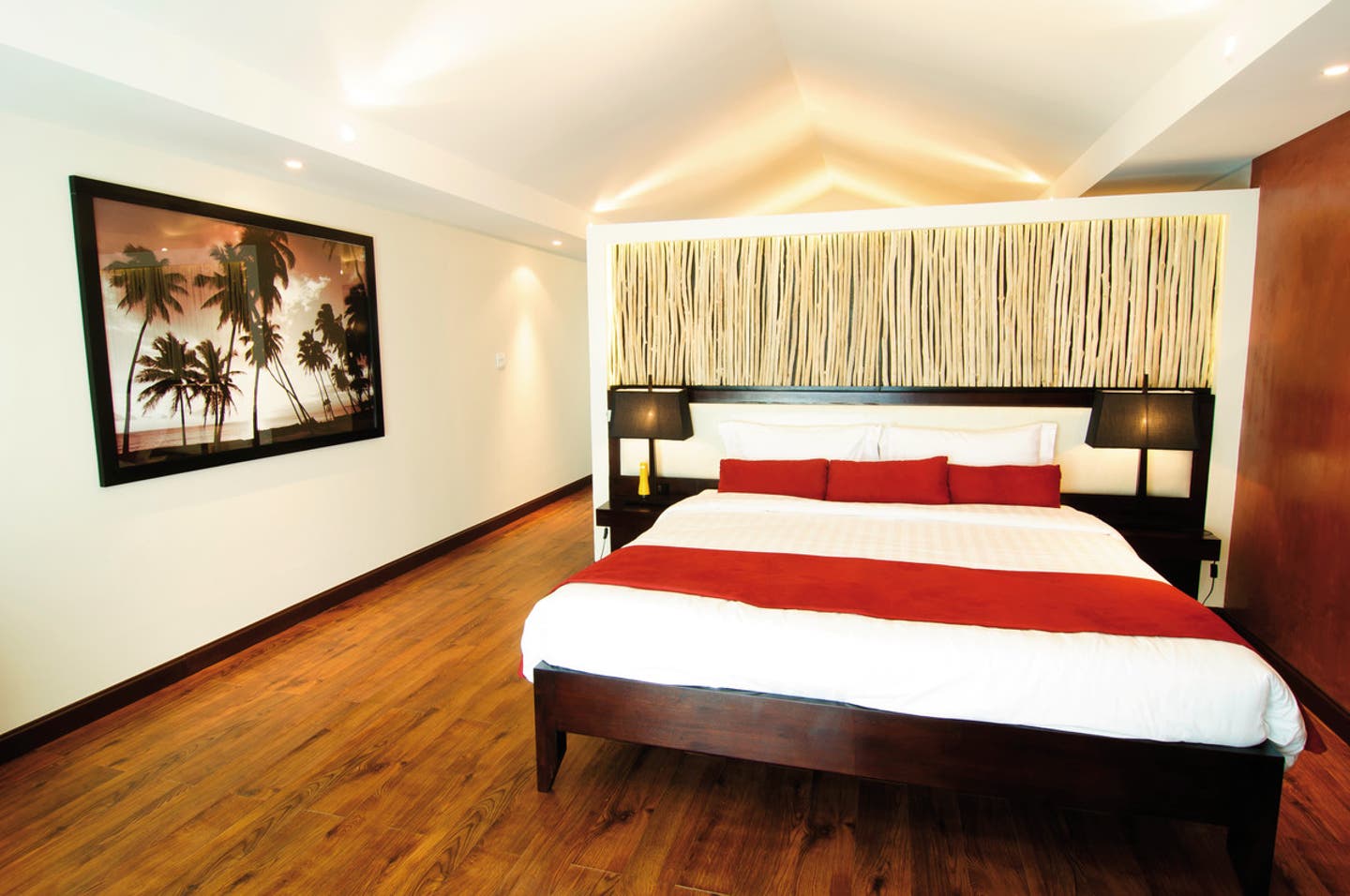Honeymoon: Hochzeitsreisende erhalten bei Anreise Blumendekoration auf dem Zimmer.