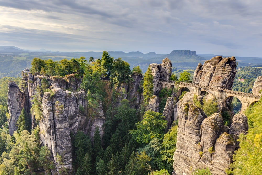 In Halbestadt, einem Ortsteil von Königstein, beginnt deine Wanderung über den Südaufstieg zum Lilienstein, dem markantesten Tafelberg der Sächsischen Schweiz. Sobald du den Gipfel erreichst, genießt du eine unsagbar schöne Panoramaaussicht über den Nationalpark – eine Route, die sich auch für Einsteiger eignet. Im Herbst erwartet dich auf dem Lilienstein ein besonders überwältigender Ausblick, denn dann erstrahlen die Blätter der Laubwälder des Nationalparks in zahllosen Farben.Auch mit dem Rad oder beim Klettern kannst du jeden Winkel des Nationalparks in aller Ruhe entdecken. Eine sehr schöne Rundstrecke führt dich mit dem Fahrrad vom Nationalparkzentrum in Bad Schandau bis zum Fuß des Liliensteins, von wo aus du die letzten 400 Höhenmeter bis zum Aussichtspunkt des Tafelbergs zurücklegst. Hier kannst du tief durchatmen und das Panorama des Gebirges genießen, bevor du wieder hinabfährst oder -kletterst und deinen Rundkurs über den Elberadweg bis zurück nach Bad Schandau beendest. Wenn du hoch hinaus möchtest, solltest du außerdem die Klettergebiete im Nationalpark erkunden.Unser Tipp: Zwischen der Elbe und Kirnitzsch befindet sich das Klettergebiet Schrammsteine – 80 verschiedene Gipfel warten hier darauf, erklommen zu werden. Auch im Wehlener Gebiet werden Kletter-Enthusiasten fündig: Hier genießt du einen unvergleichlichen Blick über den Griesgrund bis zum Lilienstein.Hotel gesucht?