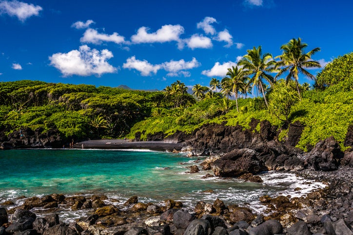 Die Autofahrt über mehr als 50 Brücken und durch rund 600 Haarnadelkurven auf der teils einspurigen Straße ist ein einzigartiges Erlebnis. Garniert mit vielen tollen Fotospots wird der Hana Highway zum Idyll für Naturliebhaber. Tosende Wasserfälle, tropischer Regenwald, exotische Blumen, schwarze Sandstrände, urwüchsige Vegetation und einzigartige Naturschwimmbecken – die Vielfalt an beeindruckenden Naturhighlights ist groß. Zur Erkundung der Road to Hana bietet es sich an, einen Mietwagen auf Hawaii zu buchen und auf diese Weise dein Abenteuer zu starten. Zudem findet sich auf Maui auch eines der schönsten Hotels Nordamerikas – das Andaz Maui in Wailea Resort.